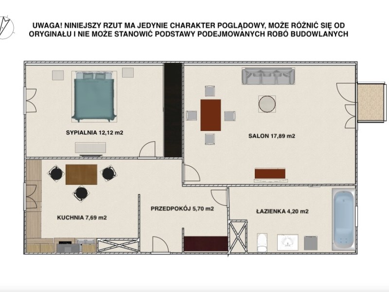 CHARAKTERYSTYKA MIESZKANIA: Dwupokojowe mieszkanie o powierzchni 48,30 m2 położone na I piętrze, budynku wielorodzinnego przy ul. Warszawskiej 70 w Olsztynie, składa się z salonu o powierzchni 17,89 m2, sypialni 12,12 m2, ODDZIELNEJ widnej KUCHNI 7,69 m2, łazienki z wc 4,20 m2 i przedpokoju 5,70 m2. Do mieszkania przynależy także balkon i piwnica 3 m2 oraz komórka lokatorska usytuowana na klatce schodowej.